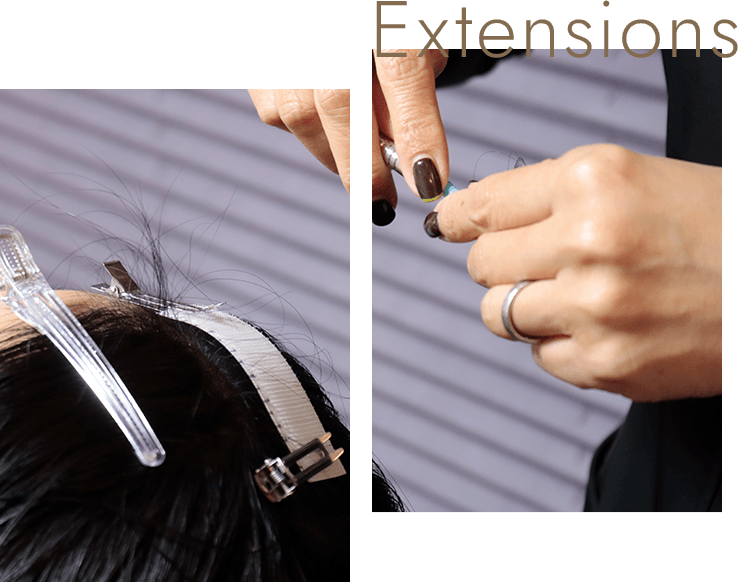 装着後も、ドライヤー・ブラッシング・ヘアアイロン・パーマ・カラーすべて対応可能。もちろん、ヘアサロンに行っていただいても大丈夫です。